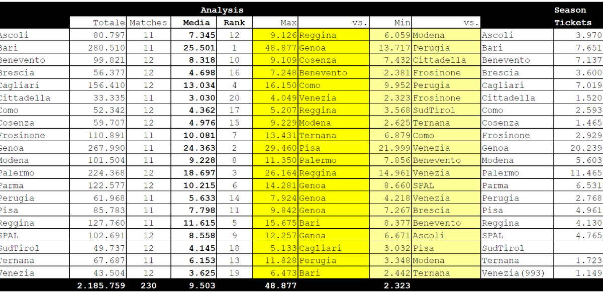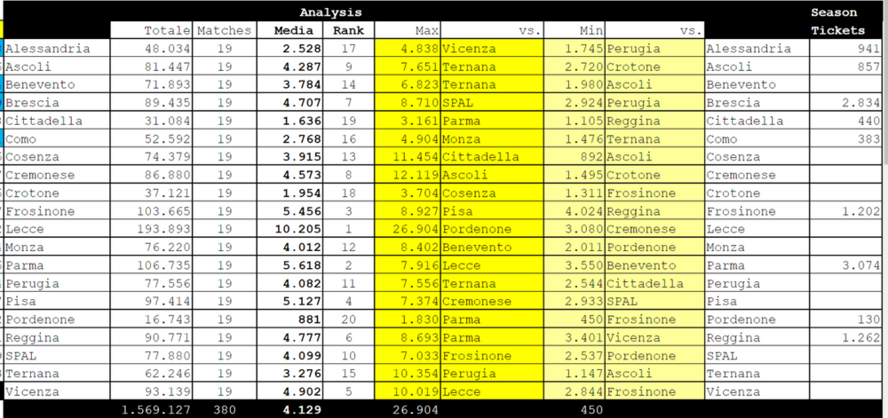 Numeri ridicoli. Il Frosinone con meno della metà degli abitanti di Terni questi numeri li fa in serie C. Anno scorso media 3276 ma considerando il derby. Senza derby media 2700. Ribadisco e rilancio il RIDICOLI.-1 points