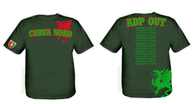 Appena vado in fierie io vado qui a mettere in atto quell'idea che c'avevo (larvone sà)... Comunque pe capicce era una maglietta verde con davanti il logo striscione adp e dietro il logo striscione da trasferta. Non me sembrava brutta....
