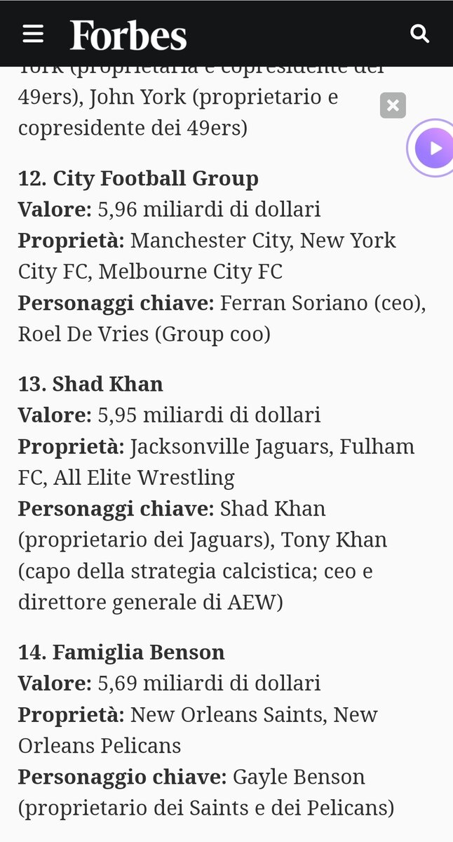 Nella classifica degli imperi sportivi al mondo è 13°