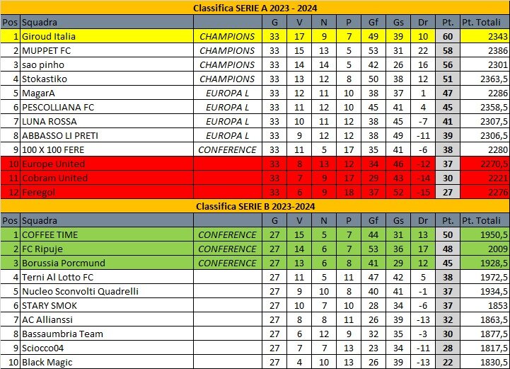 Al momento si accettano iscrizioni per il FANTACALCIO 2024-2025.