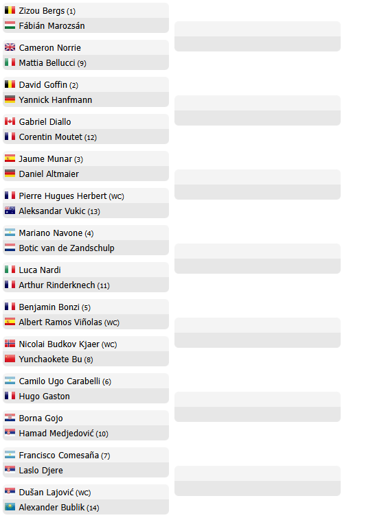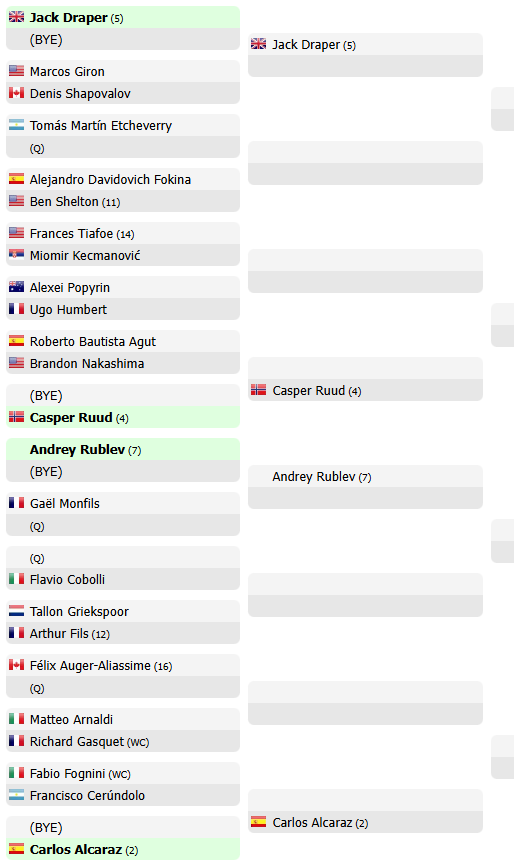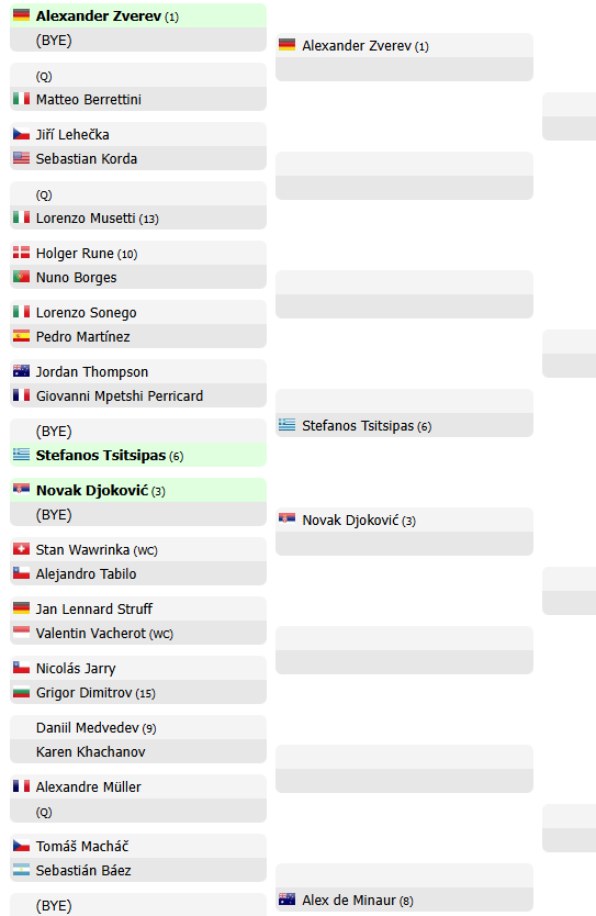 Ecco invece il tabellone provvisorio del torneo di Montecarlo, in programma la prossima settimana: mancano ancora i qualificati