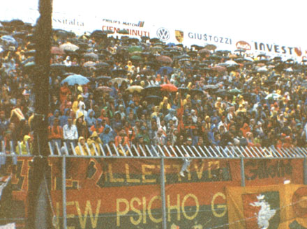 la cosa che rimarra'scolpita negli anni è l'unita' e l'amicizia che ci legava..soprattutto in trasferta eravamo una "macchia" verde che si spostava come una mandria..senza paura.